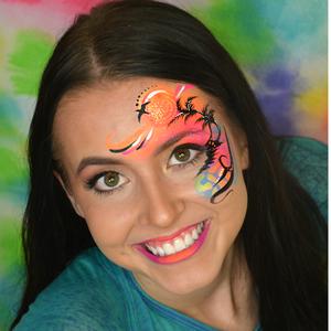 Rainbow cakes are best used with a half sponge or a body brush. Rainbow split cakes are also ideal for working with Face Paint Stencils.